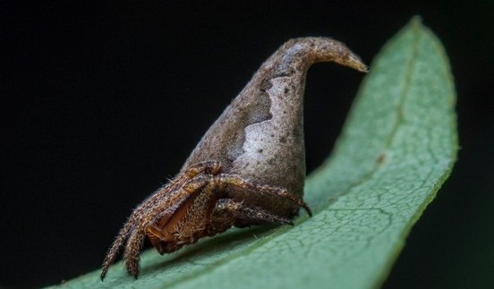 新发现的蜘蛛身长7毫米,发现于印度西南部的西高止山脉。研究人员说,蜘蛛身上形似“分院帽”的部分能帮助它在白天时混入枯叶中以躲避捕食者。