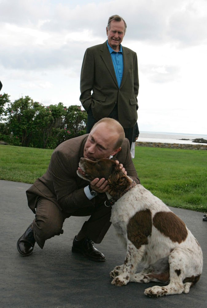 普京与美国前总统老布什在布什家族庄园举行会晤。