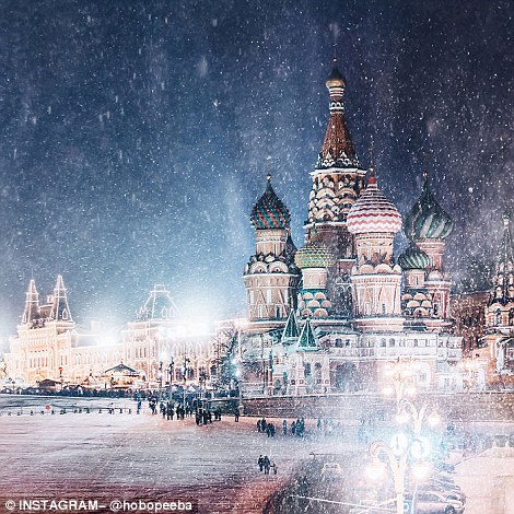 俄摄影师拍寒夜莫斯科似冰雪童话世界(组图)