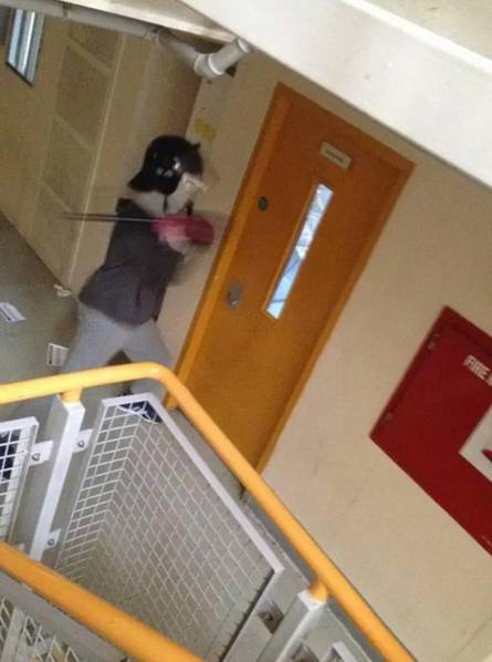 有囚犯直接用警棍破坏监狱设施。