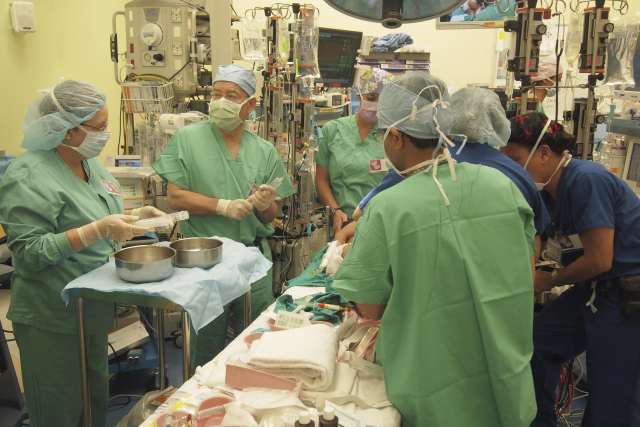 图为2011年11月1日,在美国加利福尼亚州帕洛阿尔托的露西尔·帕卡德儿童医院,医生们为连体姐妹安杰利娜和安杰莉卡施行分离手术。(图片来源:新华社/路透)