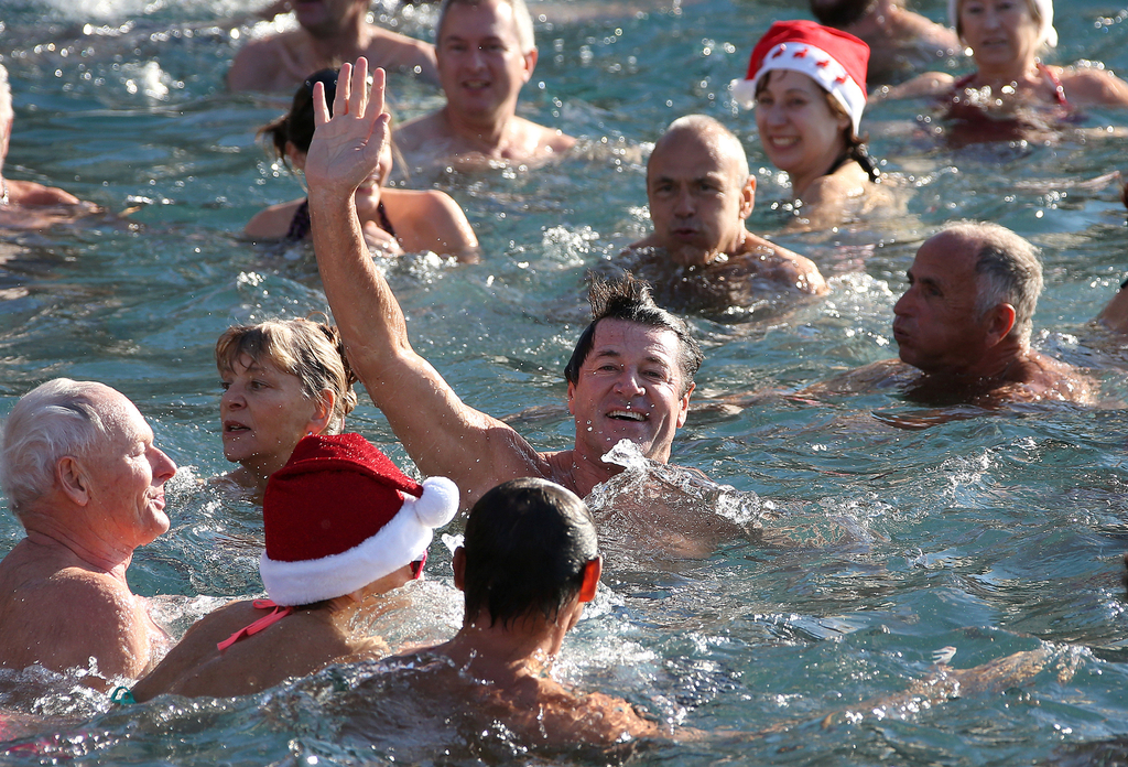 法国尼斯举办圣诞季游泳活动 “圣诞老人”无惧踊跃参加(组图)