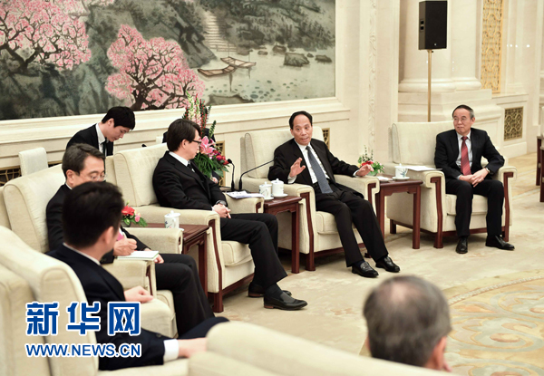 12月20日,全国人大常委会副委员长、中国国际交流协会副会长吉炳轩在北京人民大会堂会见以众议院议员平将明为团长的日本自民党议员代表团一行。新华社记者 李涛 摄