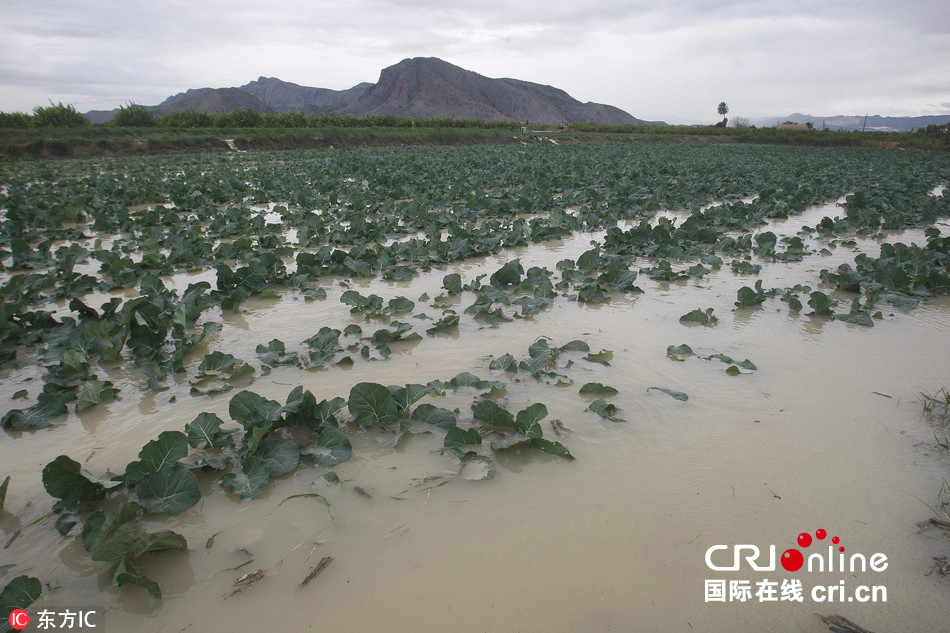 当地时间2016年12月19日,西班牙阿利坎特省奥瑞韦拉,当地塞古拉河河水绝提,农作物被淹。据悉,西班牙东部地区遭遇强降雨和洪水,东部沿海的约129所小镇的学校被迫停课。图片来源:东方IC