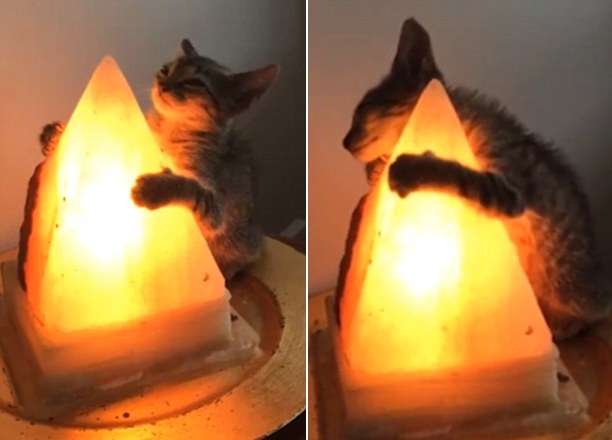 这只猫咪名叫“Selenite”,只有3周大,是主人从街头捡到的一只流浪猫。也许是从未感受过这样的温暖,这只小家伙一到家便用它的爪子紧紧地抱着一盏发光的灯。从图片上可以看到,它轻闭双眼,头微微向后仰起,似乎很享受这种温暖的感觉。