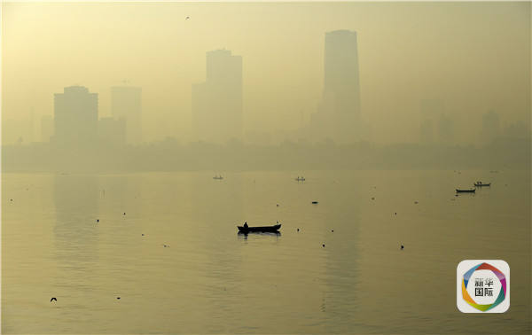 2016年1月29日,在印度的另一城市孟买,雾霾将城市的颜色染成灰黄。(新华社/法新)