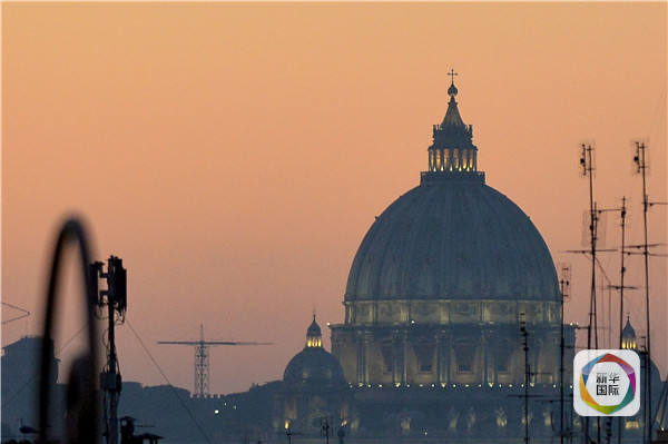 从这张2015年12月28日摄于意大利罗马的照片中,可以看到梵蒂冈的圣彼得大教堂顶端被雾霾染上了一层烟灰色。(新华社/法新)