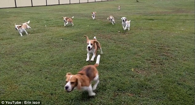 相关视频显示,一群小猎犬看到遥控车后欣喜若狂。遥控车一加速,它们也跟着加速紧追不舍,遥控车转弯,它们也跟着转弯。从视频中还能听到小猎犬的叫声,它们似乎玩得很开心。拍摄者称,有一只小猎犬起初兴致并不高,或许是同伴的欢脱感染了它,它后来也加入了追赶遥控车的队伍里。