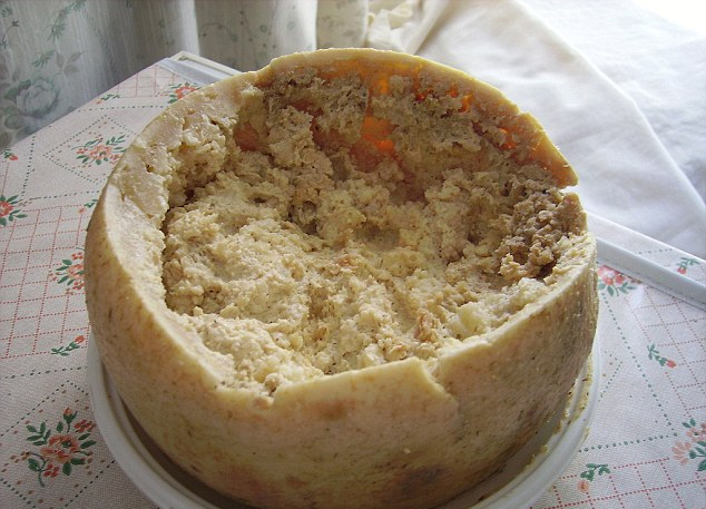 意大利有一款活蛆奶酪,他们把帕米桑干酪晾晒在空气中方便苍蝇在上面排卵,据说幼虫食用奶酪之后其中的脂肪会被高度分解。
