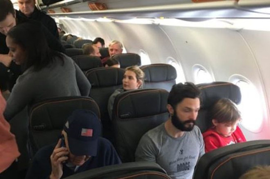 据悉,当天伊万卡在纽约肯尼迪机场乘坐JetBlue航空公司的飞机,并没有坐头等舱,而选择了经济舱。然而,就在机舱内,一位同行男性乘客走过来对伊万卡大喊道:“你爹正在毁灭美国!”
