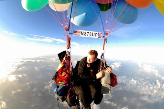 加拿大一名男子为了给自家生意打广告,坐在绑着上百个氢气球的躺椅上一飞冲天,上演动画片《飞屋环游记》中的场景。不过,这一“空中特技秀”为他招来数千加拿大元罚款。