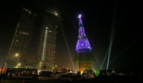 据报道,位于首都科伦坡的人工圣诞树高度达到大约57米,比去年的世界最高圣诞树还高出2米。