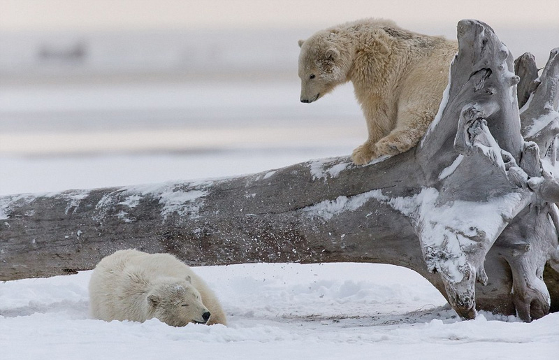 42岁的自然摄影师克里斯托弗 瓦瑟兰(Christophe Vasselin)在美国阿拉斯加州拍摄了一组北极熊搏斗的照片。小家伙们在倒下的树干周围跌倒,一只小熊爬到了树干上方,然后开始打架。过了一会,一只小熊把另一只推到地上后获得了胜利。