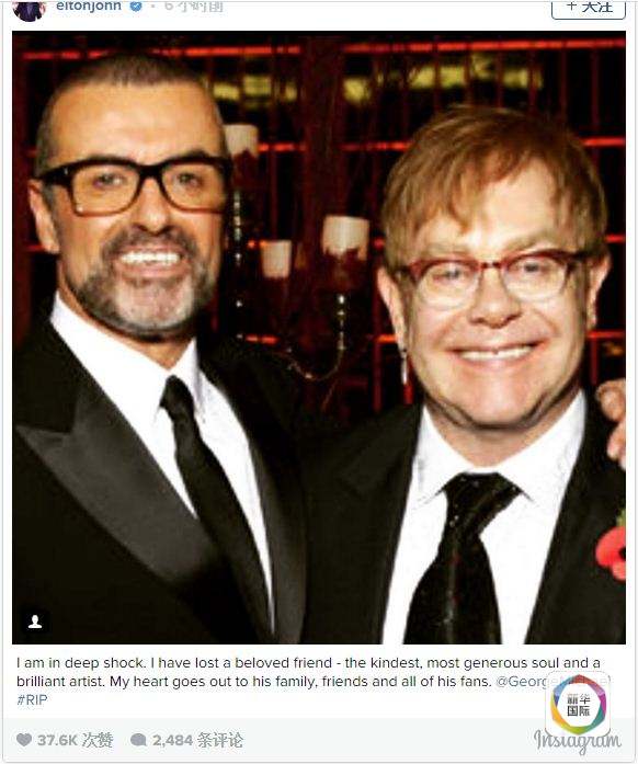 英国著名歌手埃尔顿·约翰当天也在Instagram账户上贴出他与迈克尔的合影旧照并致哀,称自己失去了一位“亲爱的朋友——一个最善良、最慷慨的灵魂,一位出色的艺术家”。