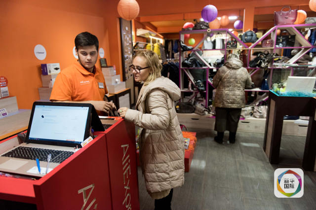 11月9日,在俄罗斯首都莫斯科的速卖通线下体验店,工作人员帮助顾客下单。 2016年第一季度,俄罗斯跨境电商消费近700亿卢布(约合11亿美元),其中近一半发生在中国电商平台。有国际版“淘宝”之称的阿里速卖通进驻俄罗斯后,网站月均浏览人次超1560万,平均每天有30万个包裹从中国发到俄罗斯。(新华社发,叶甫盖尼·西尼岑摄)