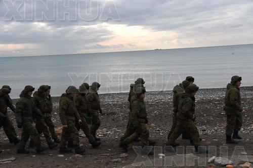 12月26日,在俄罗斯索契,俄士兵在图-154飞机坠毁的黑海岸边巡逻。俄罗斯国防部25日表示,国防部所属一架飞往叙利亚的图-154飞机当天清晨在索契附近黑海海域坠毁,机上84名乘客和8名机组人员无人生还。目前,有超过3500名救援人员和30多艘搜救船只在黑海相关失事海域进行搜救工作。(新华/法新)