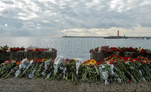 12月26日,俄罗斯索契海边摆放着哀悼图-154飞机失事遇难者的鲜花。俄国防部所属一架飞往叙利亚的图-154飞机25日清晨在索契附近黑海海域坠毁,机上84名乘客和8名机组人员无人生还。(新华/路透)