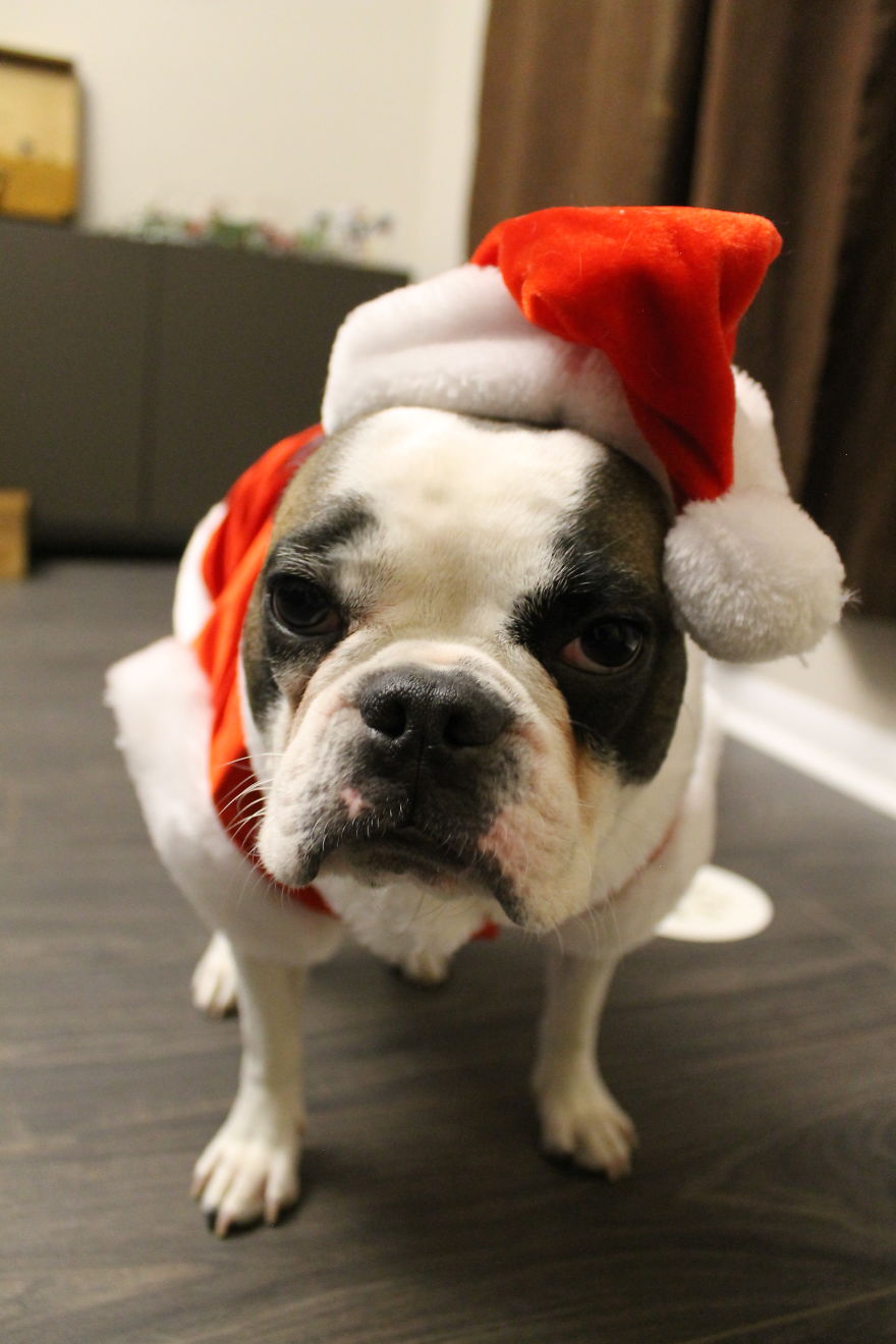 据美国boredpanda网站报道,一名网友家的狗成为了网红,原因是他家的狗总是很激动和开心,但是它总摆着一张“臭脸”,仿佛每天都不开心一样。图为脾气暴躁的“圣诞老人”。