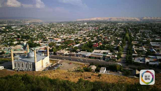 从苏莱曼山上俯瞰奥什市。新华社发(凌关胜摄)