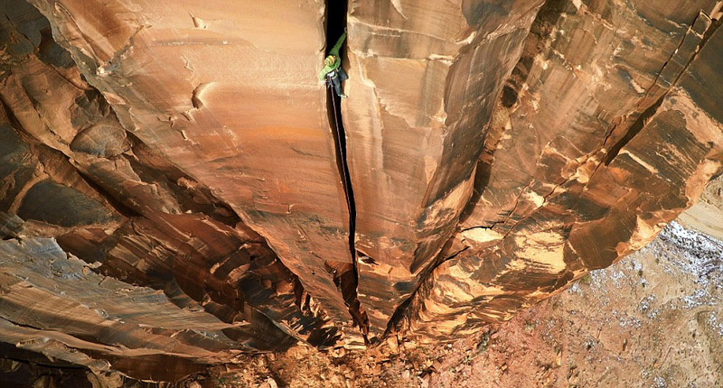 这个勇敢的年轻人挑战在美国犹他州Moab悬崖的一处恐怖裂缝中玩攀岩,据了解,这个裂缝的顶端距地高度达到了400英尺(约121米)