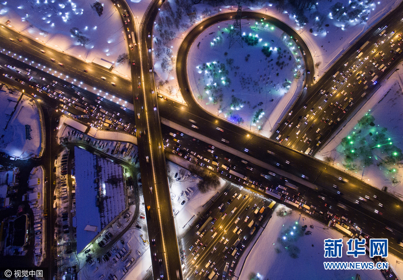 当地时间2016年12月27日,俄罗斯莫斯科,Varshavskoye高速路与莫斯科环城公路夜景。rna/视觉中国