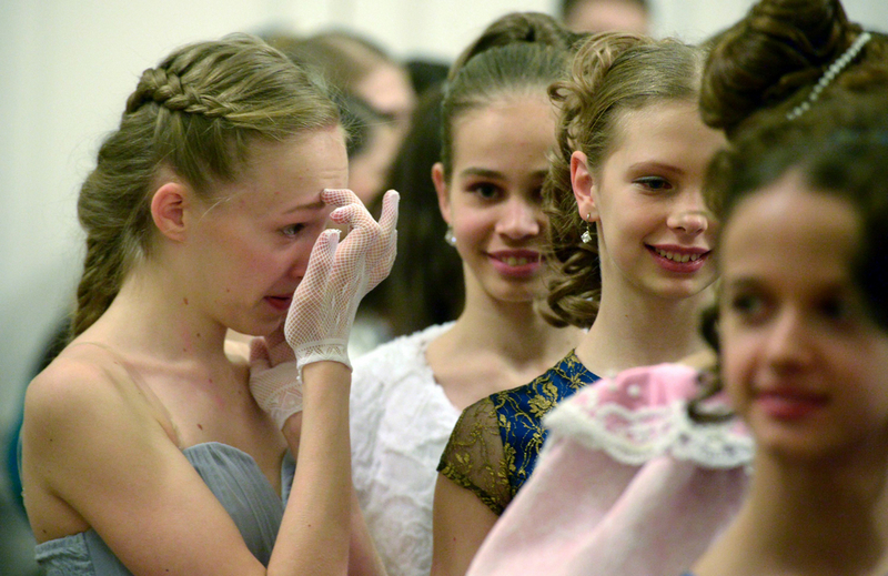 当地时间2016年12月27日,俄罗斯圣彼得堡,苏沃洛夫军事学校和海军学院学员以及瓦冈诺娃俄罗斯芭蕾学院学生参加圣诞节舞会。
