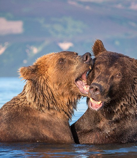 38岁的业余摄影师伊格尔·弗拉索夫(Egor Vlasov)在前往俄罗斯堪察加半岛的途中拍摄到了两只棕熊相亲相爱的可爱照片。图片中,两只棕熊在风景如画的湖边嬉戏玩耍,当它们都用后掌着地抱在一起亲密舔舐彼此时,就像在跳华尔兹。