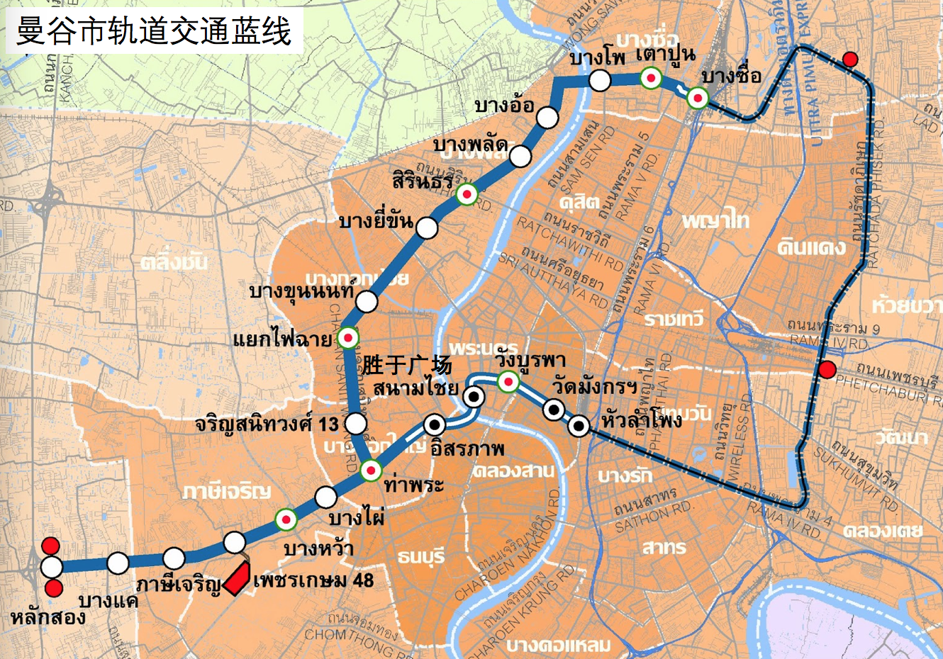 曼谷轨道交通蓝线路线图。(来源于互联网)