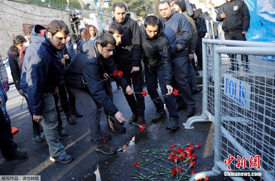 当地时间2017年1月1日,土耳其伊斯坦布尔,当日伊斯坦布尔一夜总会遭恐怖袭击,致39人死亡,民众献花悼念恐袭遇难者。