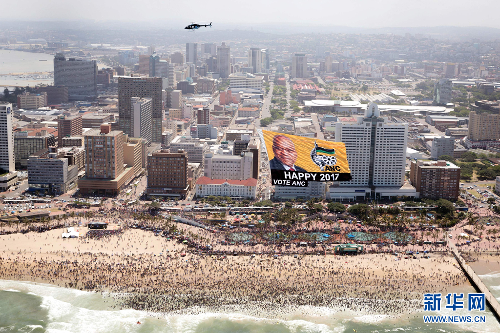 当地时间2017年1月1日,南非德班,约12万民众聚集沙滩庆祝新年。图片来源:视觉中国
