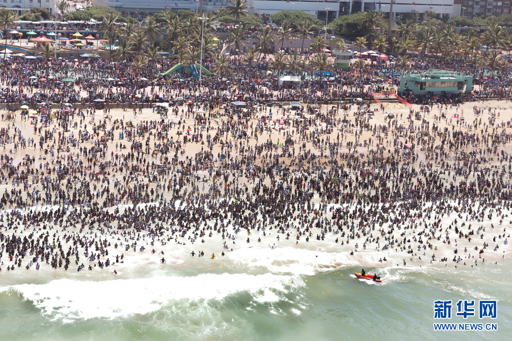 南非德班海滩12万人下海庆祝新年 密集如“煮饺子”(组图)