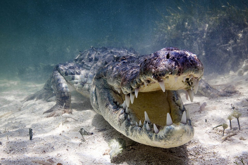 大胆摄影师水下拍摄鳄鱼特写走红(组图)