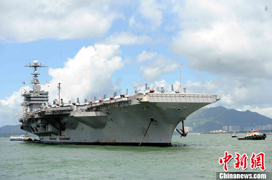 资料图:2012年7月10日,美国核动力航空母舰乔治华盛顿号,在香港水域作短暂停留及补给。中新社发 谭达明 摄