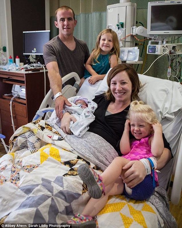 据悉,在Abbey怀孕19周产检时被医生告知肚中的女儿是无脑儿,这意味着在出生后女儿存活的时间仅仅只有几个小时。无脑儿是神经管畸形的一种。无脑畸形:为大脑完全缺失,且头皮、颅盖骨也缺失,仅有基底核等由纤维结缔组织覆盖,出生后婴儿无法生存。图为Abbey一家。