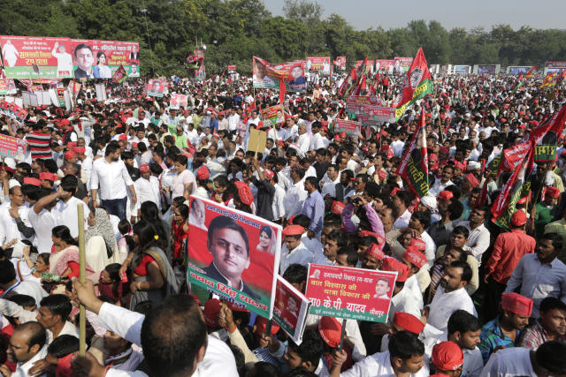 2016年11月3日,北方邦首席部长阿基莱什·亚达夫的支持者在北方邦首府勒克瑙举行集会。(新华/美联)