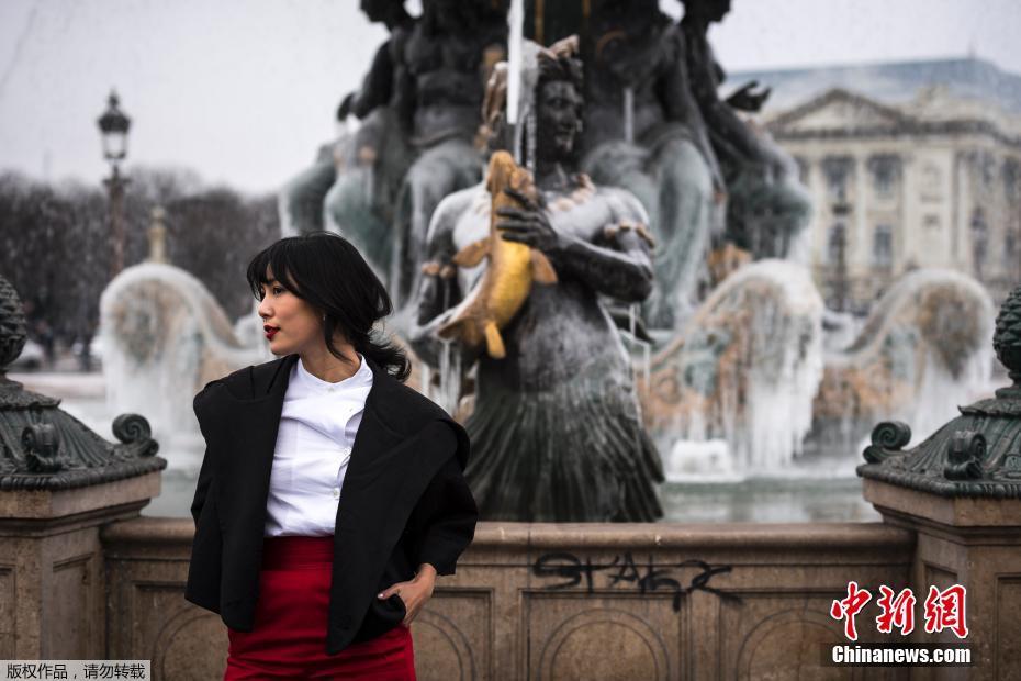 巴黎协和广场上喷泉被冻冰 “暂停”凝固超梦幻(组图)