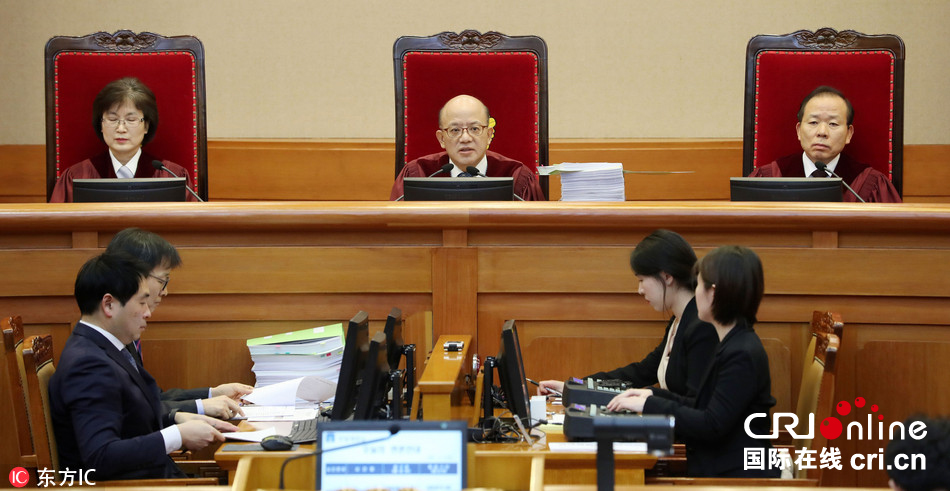 当地时间2017年1月5日,韩国首尔,韩国宪法裁判所举行总统朴槿惠弹劾案第二次庭审辩论,朴槿惠再次缺席。图片来源:东方IC