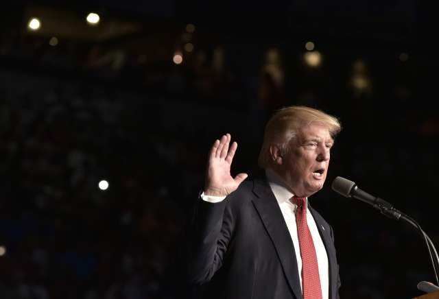 2016年9月19日,在美国佛罗里达州埃斯特罗市,特朗普在一场集会上发表讲话。(新华社/法新)