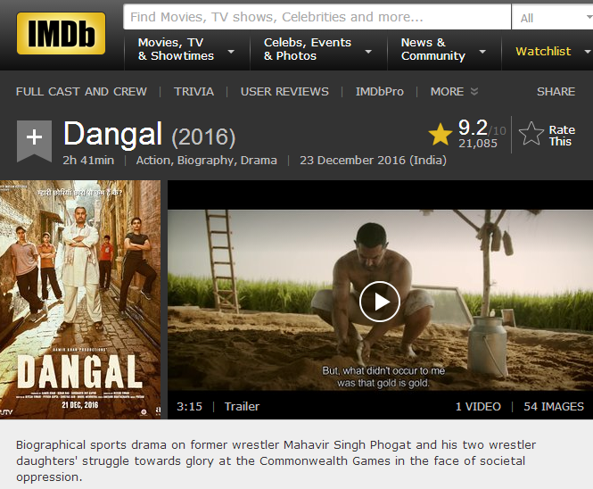 燃点与泪点齐飞,169分钟全程无尿点!这部电影就是《Dangal!(中文译名:摔跤吧!爸爸)》。