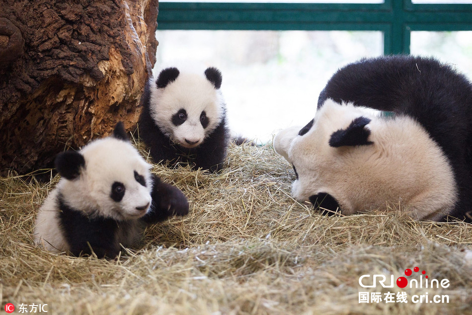 旅奥大熊猫阳阳携双胞胎宝宝亮相维也纳动物园(组图)