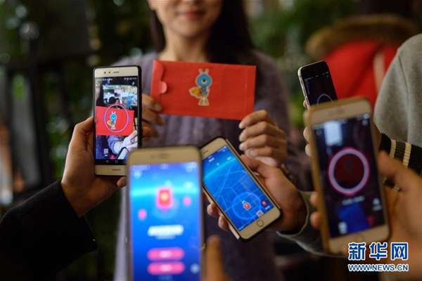 2016年12月21日,支付宝正式公布“AR实景红包”。用户在发、抢红包时,都需要满足地理位置和AR实景扫描两个条件,增强了互动性和趣味性。新华社记者 潘超越 摄