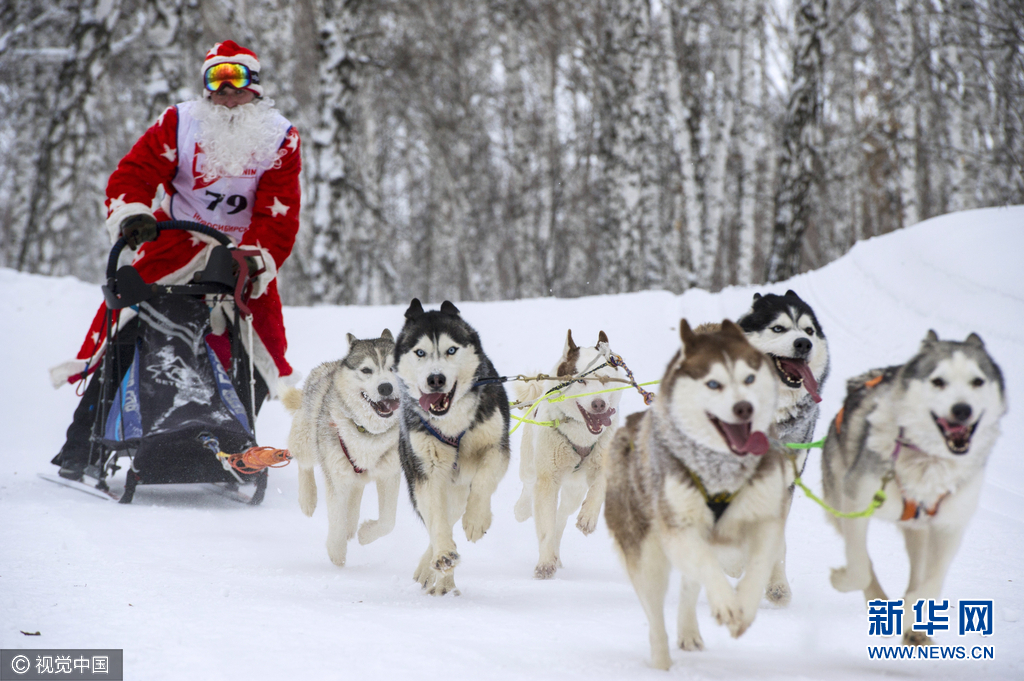 俄罗斯举行狗拉雪撬比赛 呆萌汪星人场上飞奔(组图)