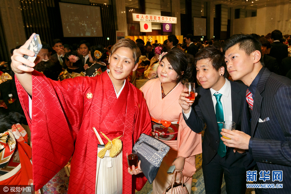 当地时间2017年1月9日,日本,年满20岁年轻人穿着和服参加成年礼。成年礼在每年的第二个周一举行。图片来源:视觉中国。