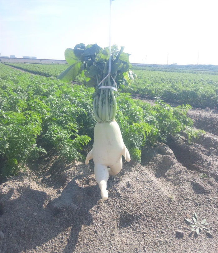 据美国Boredpanda网站报道,有的时候萝卜可能并不仅仅是一个萝卜,通过它不同寻常的外形你可能会发现,它想迈开脚步去远方旅行,同样土豆有时候看起来也像是一只熊,而普通的西蓝花则看起来像是一个满肚子抱怨的男人。下面这些长得出乎意料的水果和蔬菜们,绝对会让你印象深刻。图为一个成精的萝卜。
