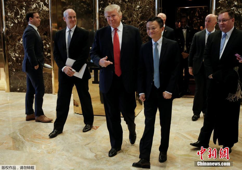 美国当选总统唐纳德·特朗普当地时间1月9日在纽约与阿里巴巴集团董事会主席马云会晤,二人谈及小企业发展和就业问题,特朗普称赞马云是全球最优秀的企业家之一。