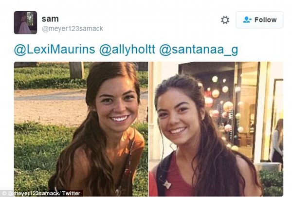 桑塔娜在圣迭哥市的一家商场购物时,一位名为伊索贝尔的女生走进她,请求她为“救助儿童”基金会募捐,结果桑塔娜发现二人长相极其相似。于是二人合影并交换了联系方式之后,桑塔娜将照片发布在网络上,并附文“就在刚刚遇见了我的‘分身’”,而网友则将这一事件推向了高潮。目前,该推文已经被转发了超过2.2万次,桑塔纳目前已收到至少4位与她长相极其相似女生的照片。