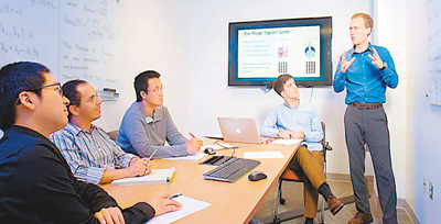美国量子信息与计算机科学联合中心的研究人员在讨论量子信息技术。资料图片
