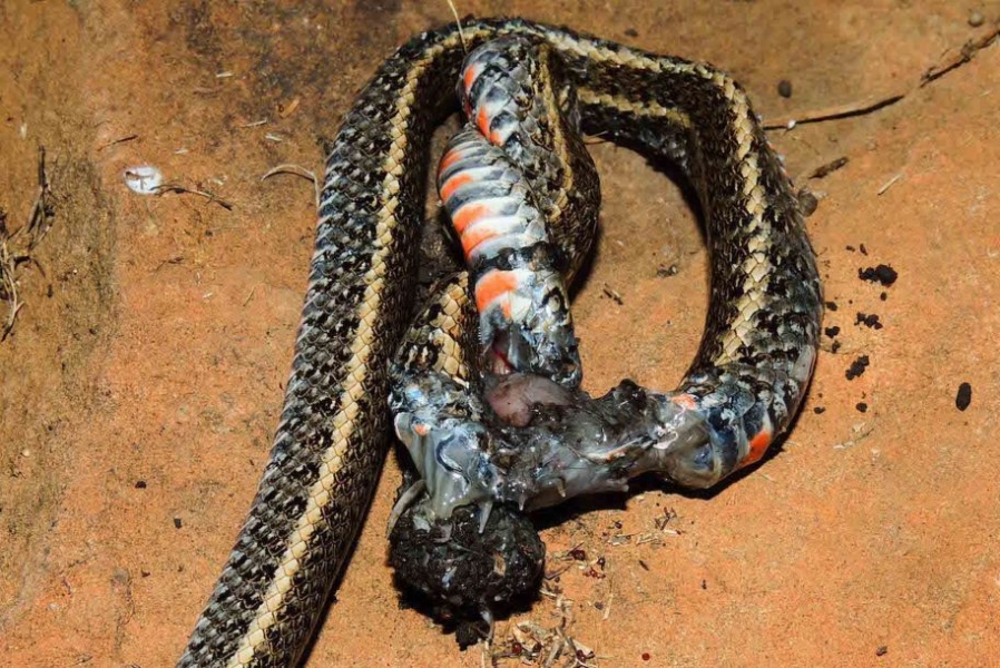全球首次:狼蛛野外生吞地面蛇(组图)