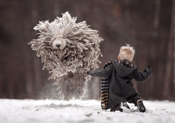 台湾东森新闻云1月13日报道称,俄罗斯摄影师谢利瓦史托夫(Andy Seliverstoff)在圣彼得堡的一处公园里,花了一个多小时拍下了一幕幕“人狗乐翻天”的画面。58岁的谢利瓦史托夫说:“亚瑟和宙斯在公园里一直玩、一直玩,我就跟着他们一直拍 、一直拍。他们在圣彼得堡享受了一个美好的下雪的冬日。这也是亚瑟第一次看到这种类型的狗狗。他对匈牙利牧羊犬的特殊外型以及跳跃的高度,感到既好奇又兴奋。”