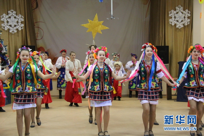 1月14日是俄历新年。1月1日,俄历新年庆祝活动在俄罗斯远东城市符拉迪沃斯托克市铁路工人文化宫举行。当地演出团体为市民奉献了一场精彩的歌舞表演。新华网记者吴刚摄